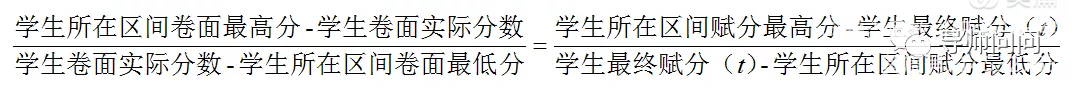 B、根据第一步,得出每个区间的4个数值。分别是每个区间的赋分的最高分(上限)、赋分的最低分(下限)、卷面得分的最高(上限)、卷面得分的最低分(下限)。